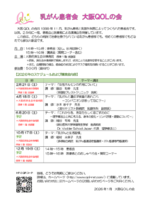 大阪QOLの会は1999年11月、乳がん患者と乳腺外科医によってつくられた患者会です。
