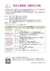 大阪QOLの会は1999年11月、乳がん患者と乳腺外科医によってつくられた患者会です。